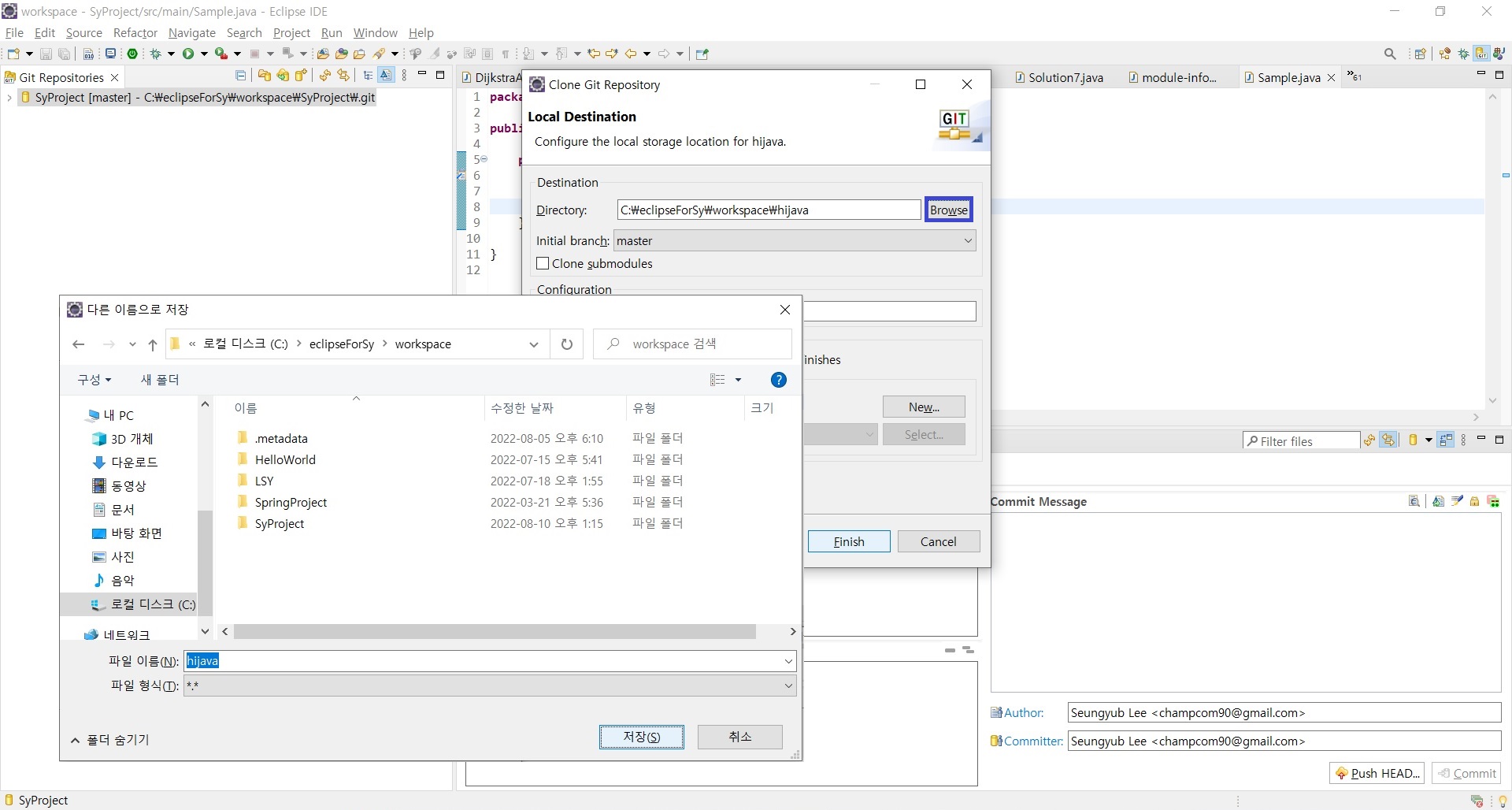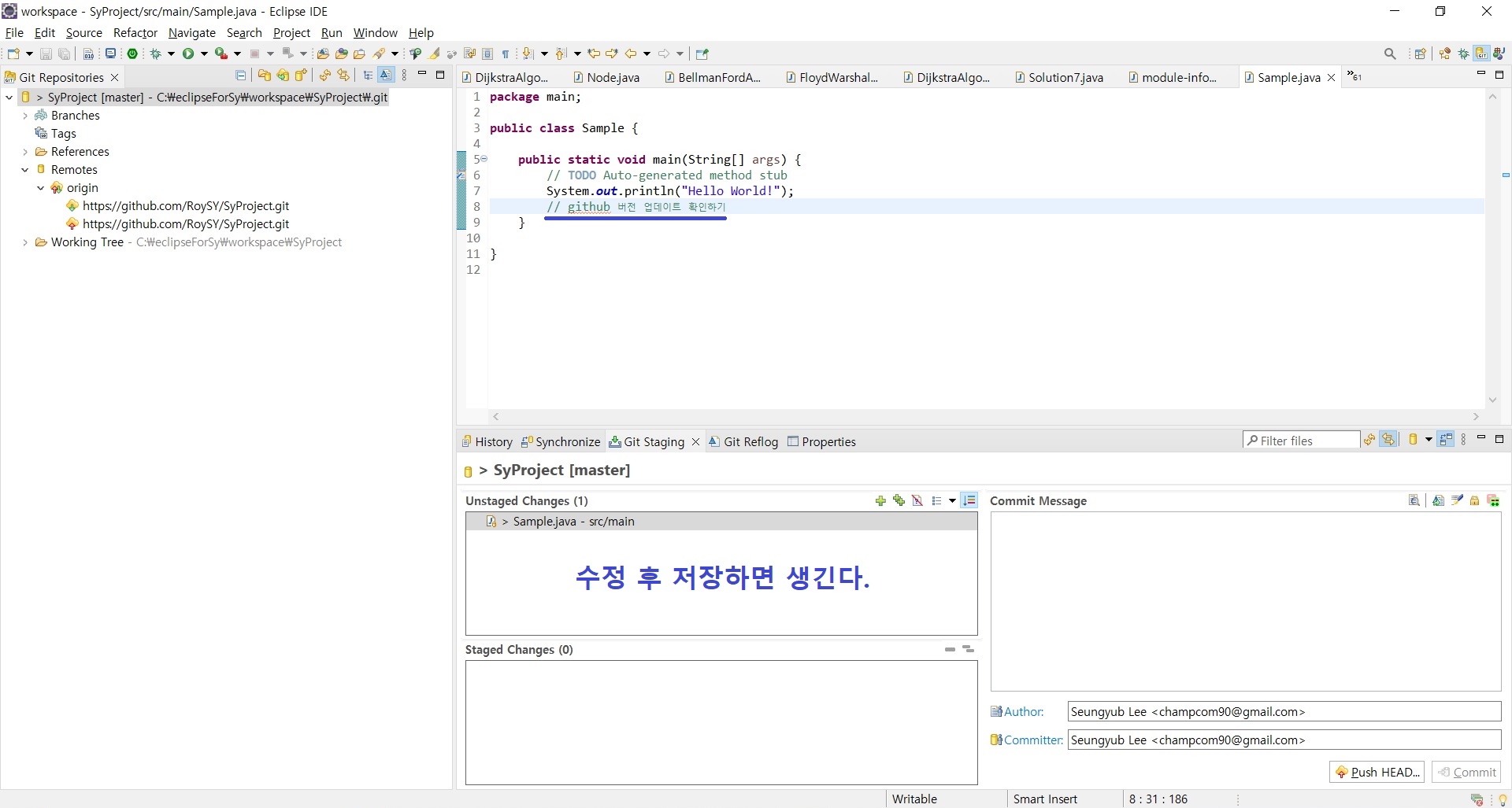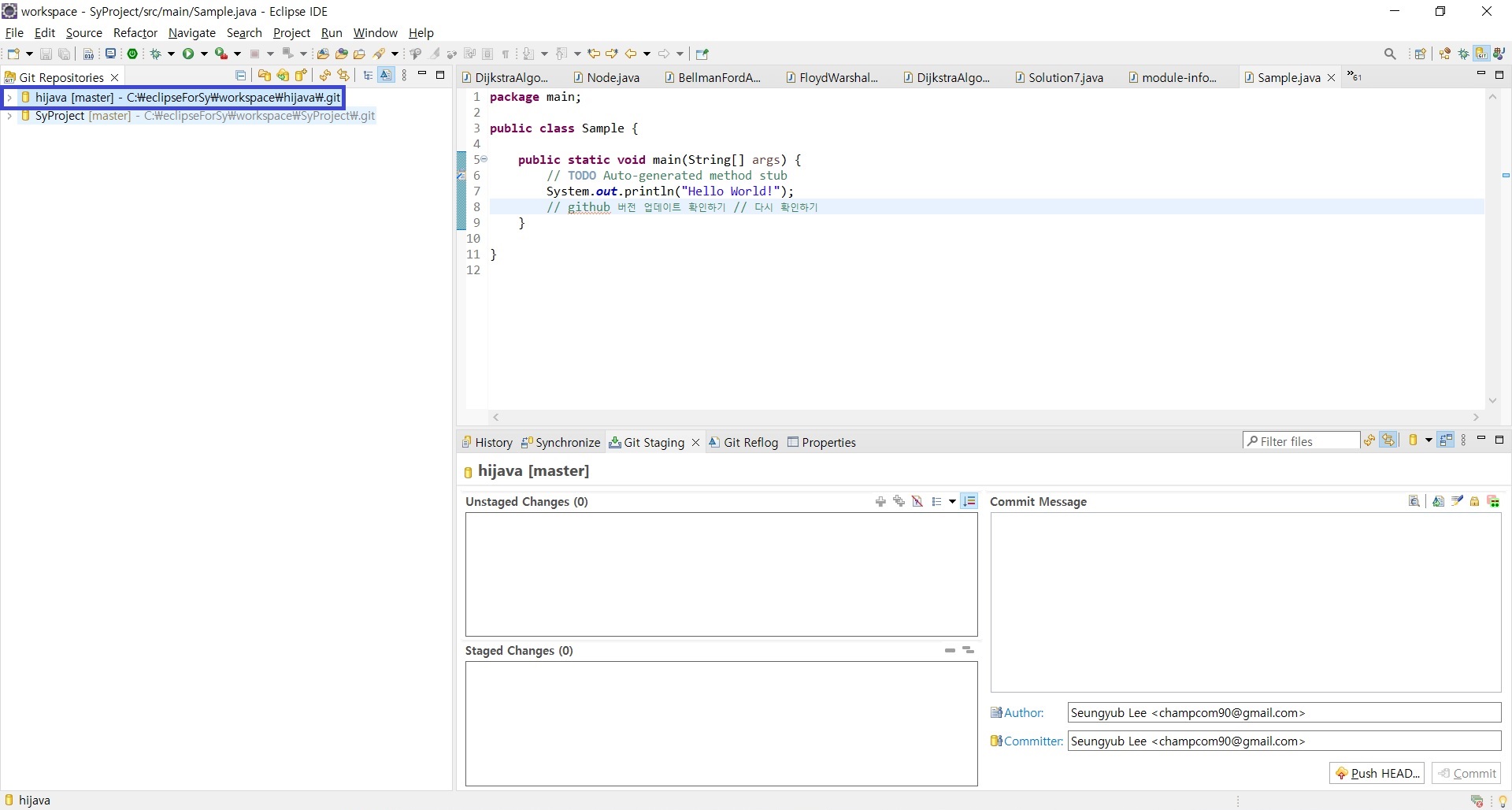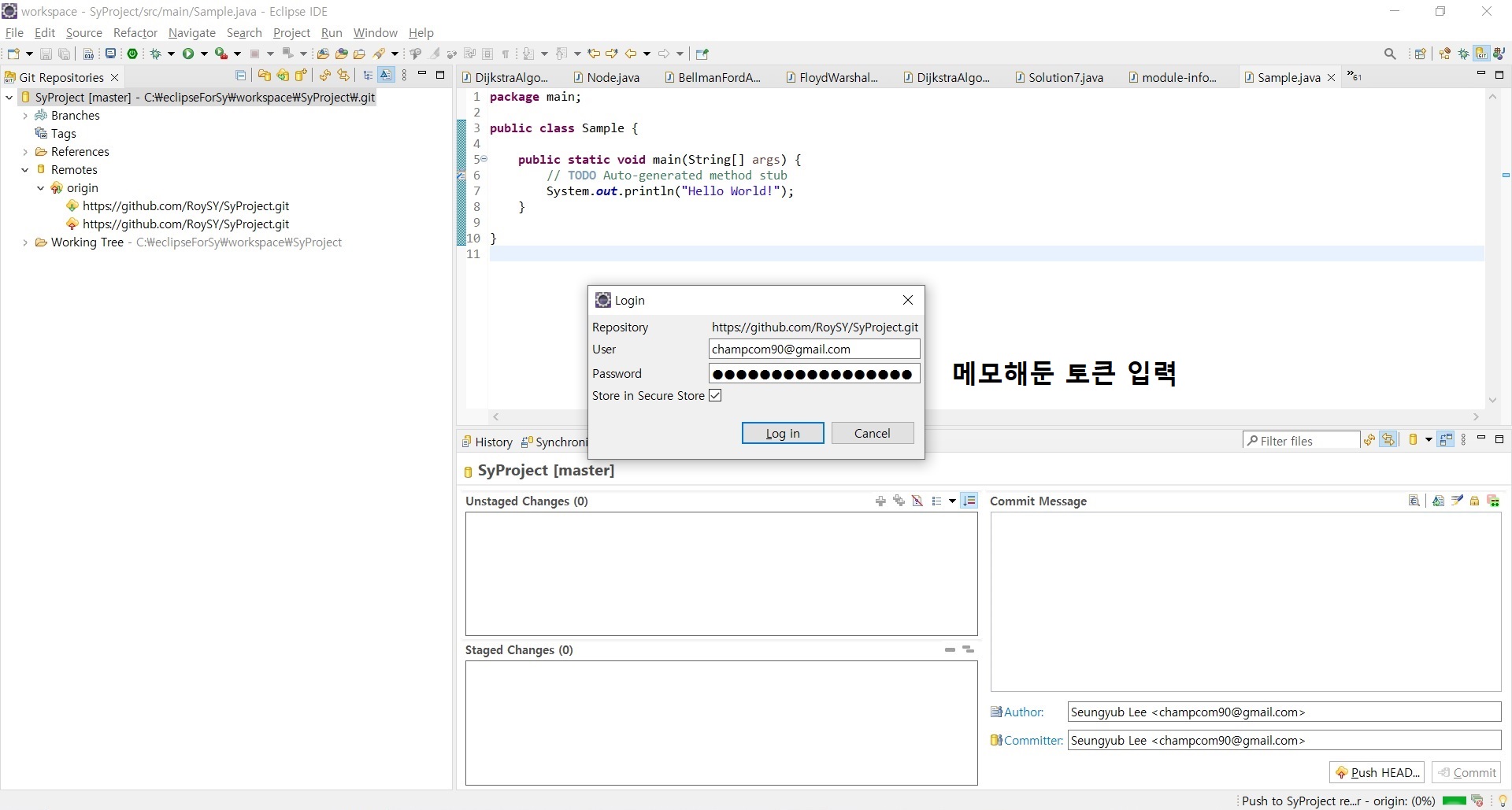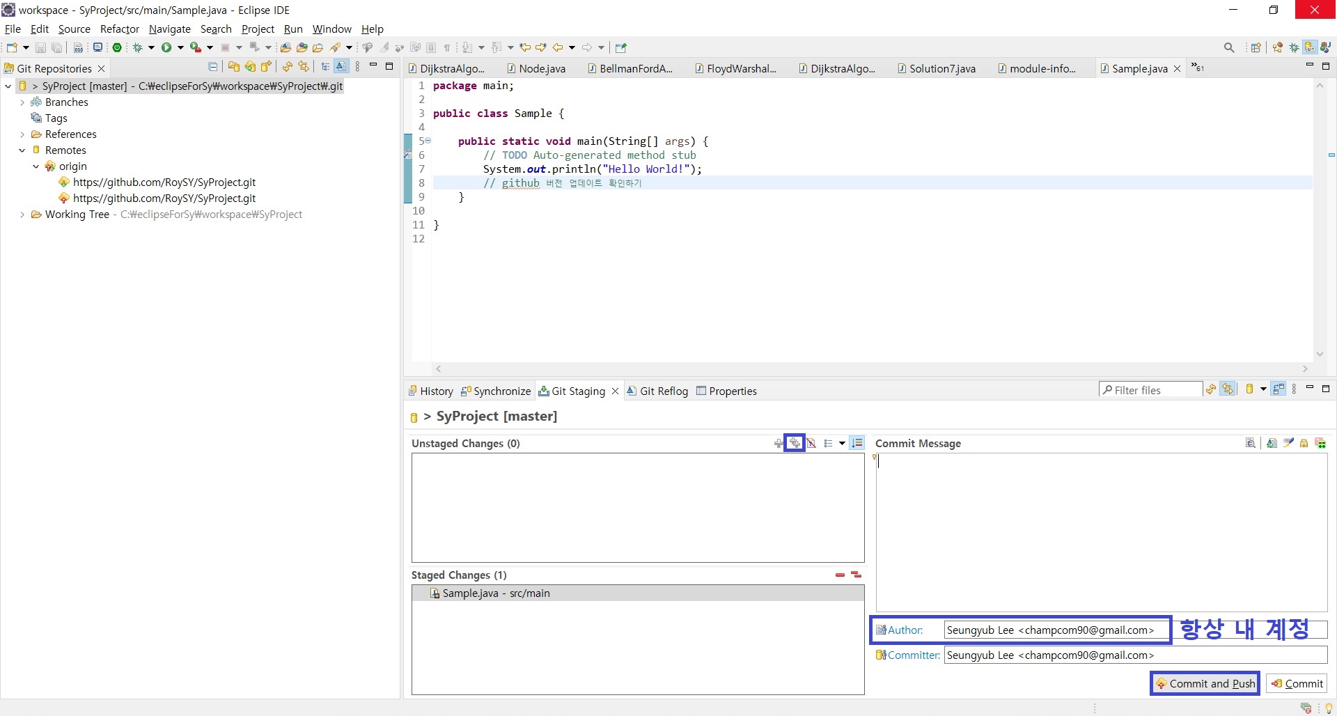 git config --global user.email "champcom90@gmail.com" (https://github.com/ 가입한 메일 주소)