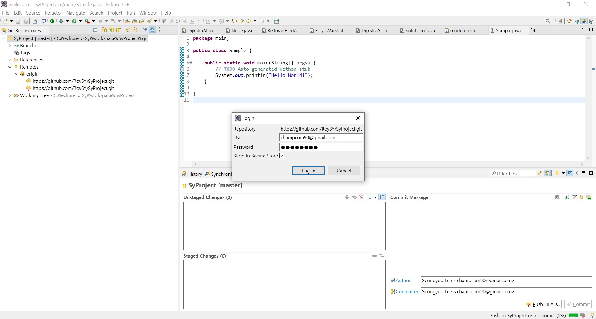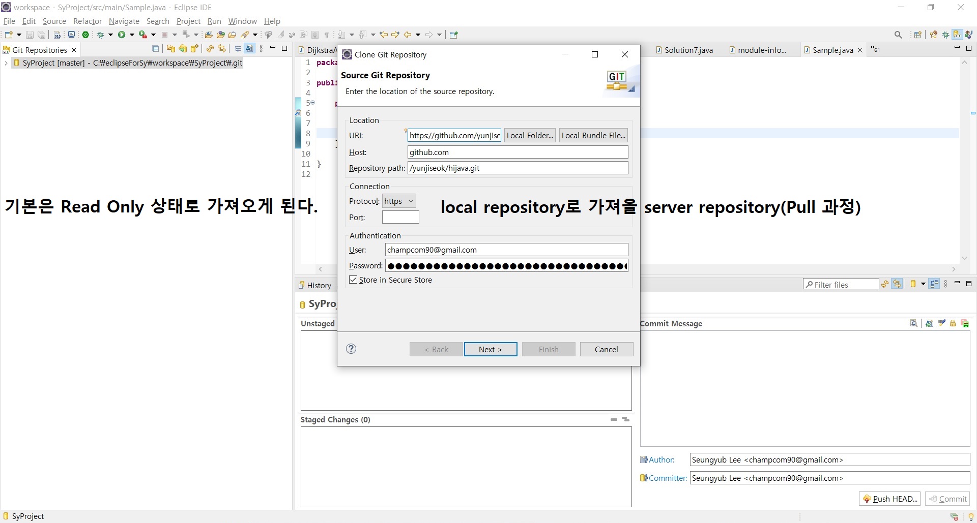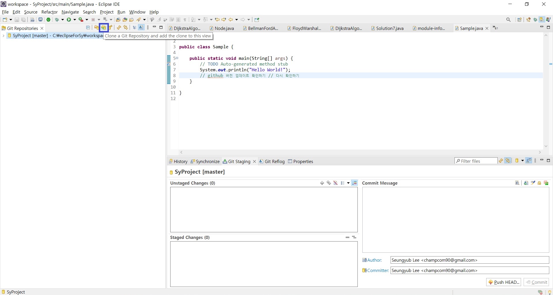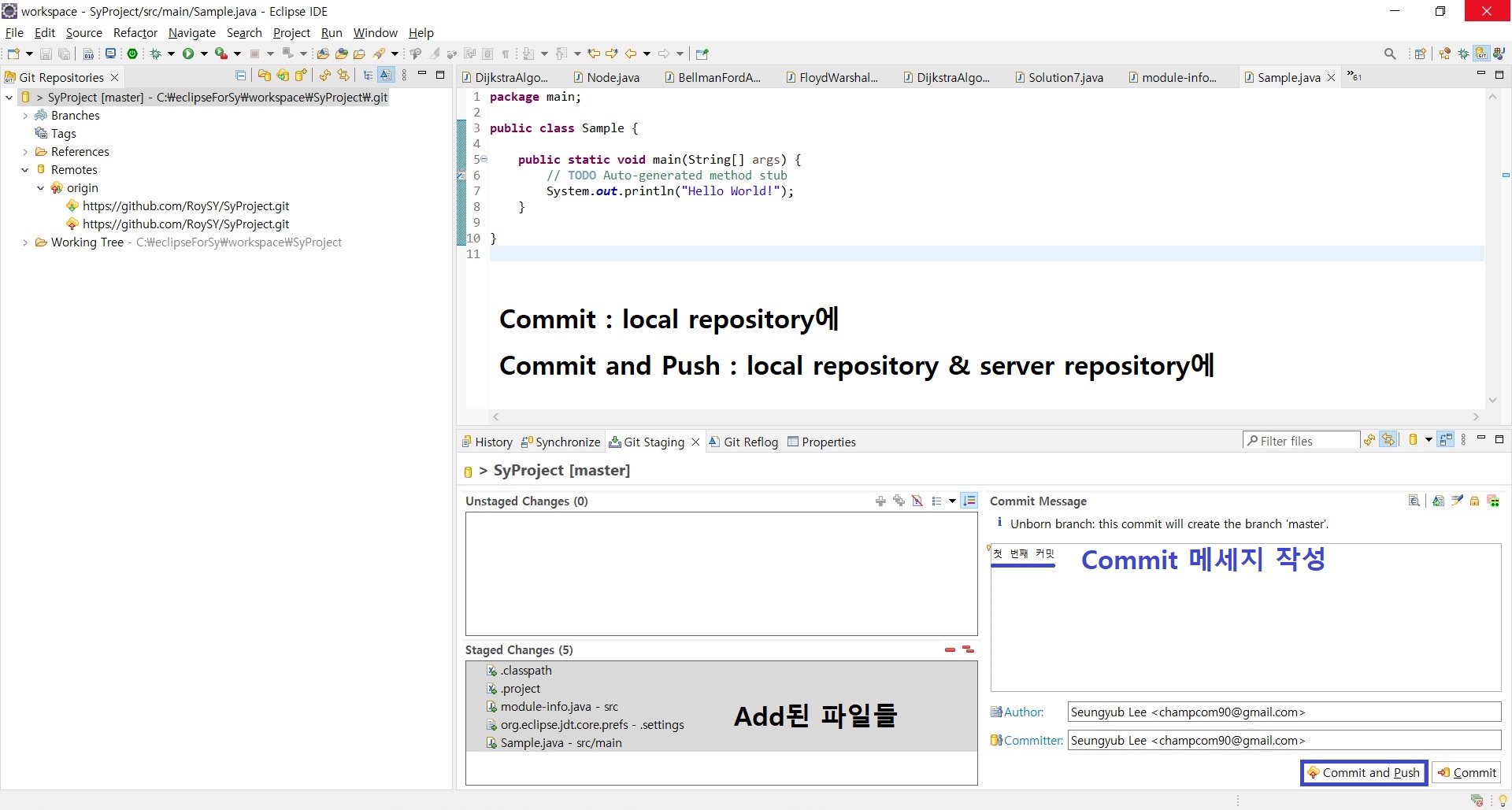 git config --global user.email "champcom90@gmail.com" (https://github.com/ 가입한 메일 주소)