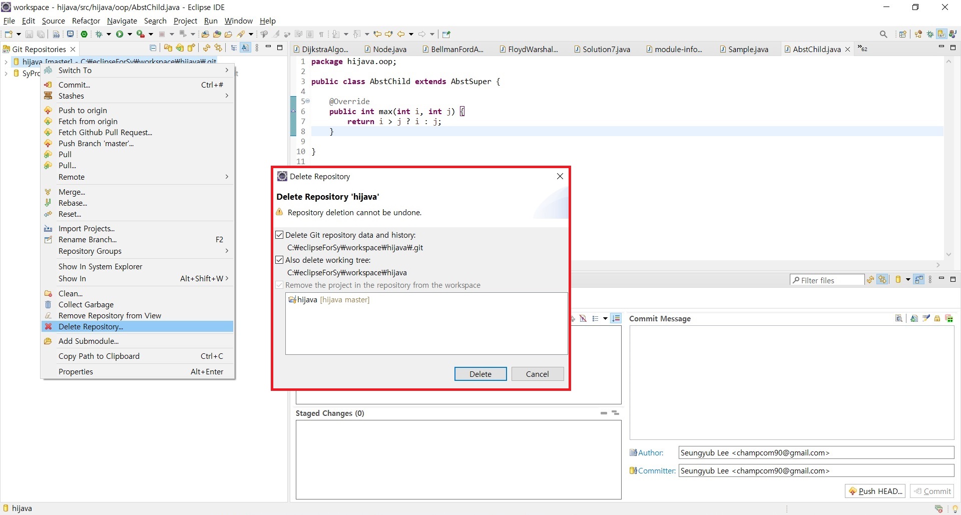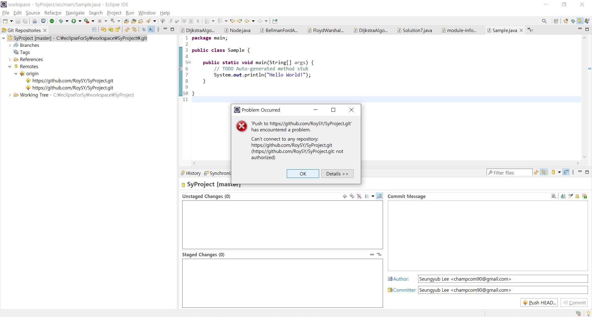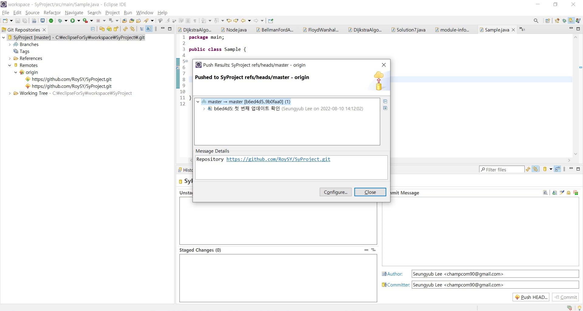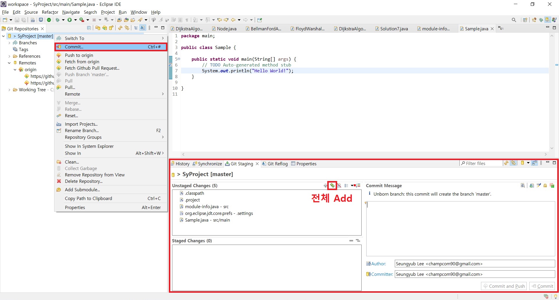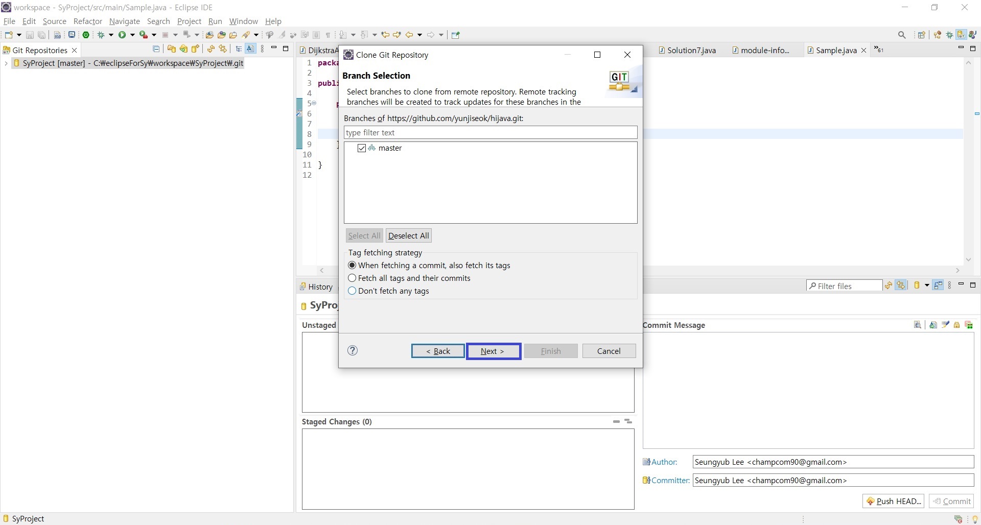 git config --global user.email "champcom90@gmail.com" (https://github.com/ 가입한 메일 주소)
