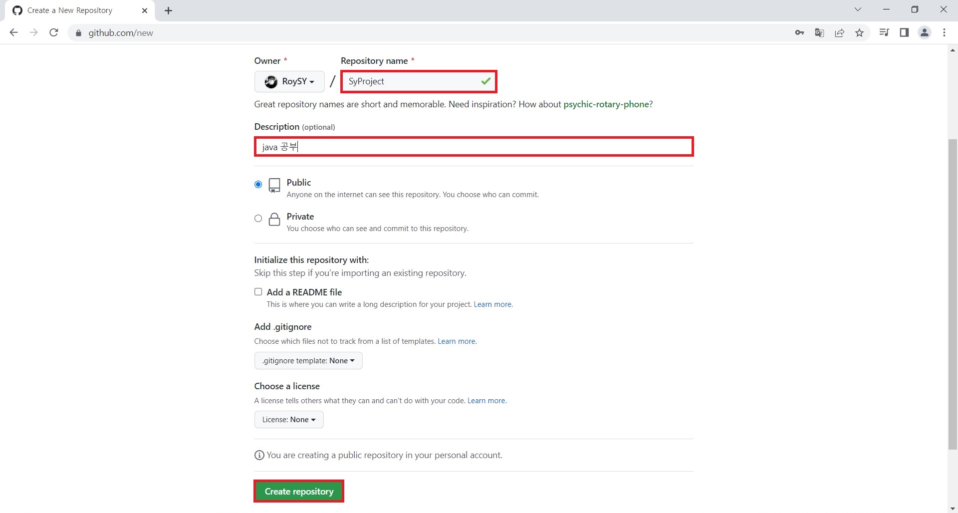 2. 회원가입 후 로그인 -> 좌측 New 눌러서 Repository 만들기