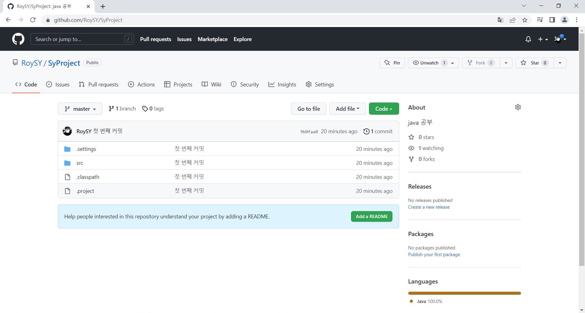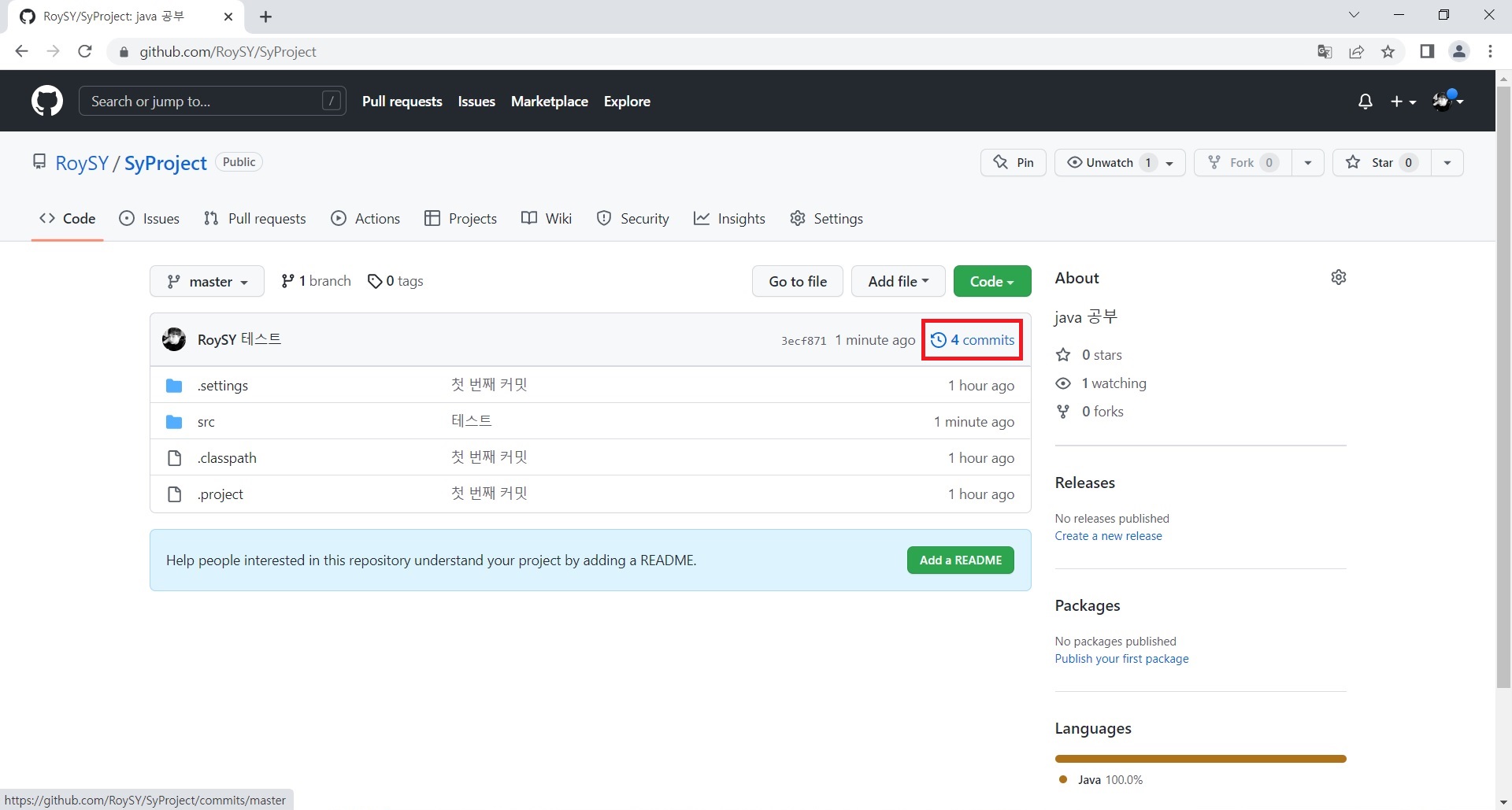 git config --list (user.name과 user.email 제대로 들어갔는지 확인)
